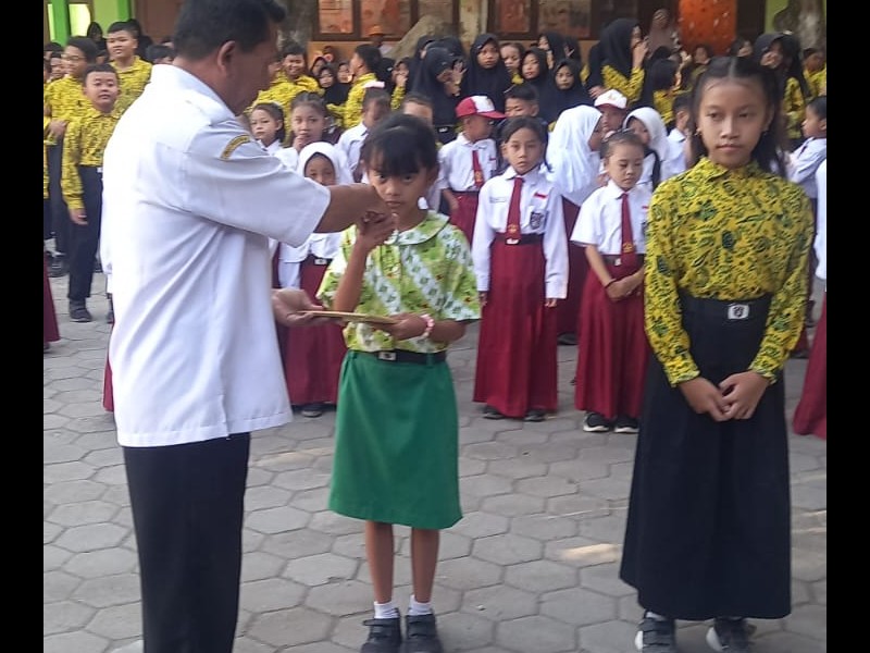 kegiatan pembagian hadiah untuk siswa yang mendapatkan juara lomba agustusan yang di bagiakan langsung oleh guru Sdn 1 Sumberanyar.